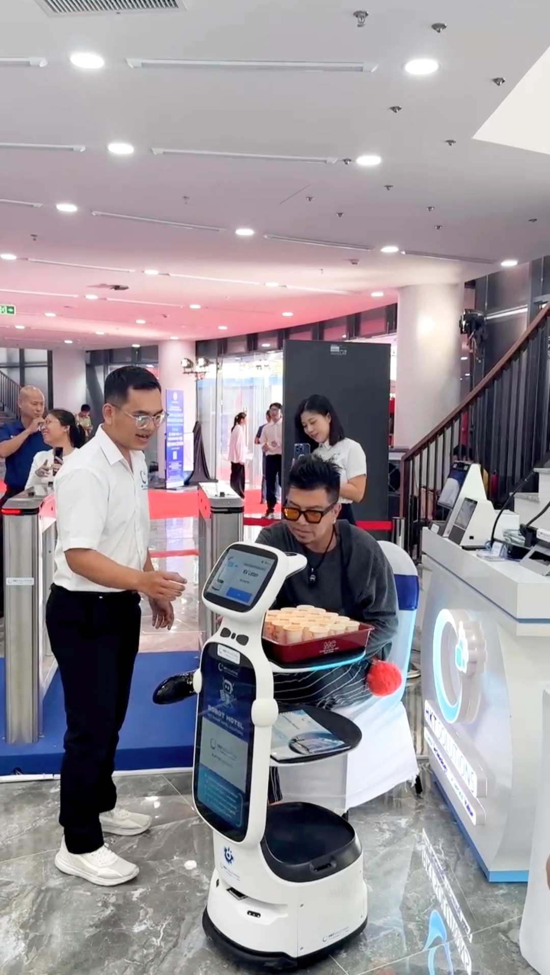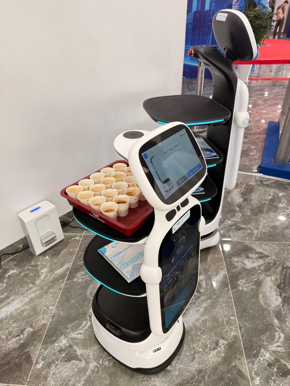 Tại Ngày hội Công nghệ số Khánh Hòa 2025, Mê Trang Coffee mang đến điểm nhấn ấn tượng với trải nghiệm robot tự phục vụ cà phê. Robot thực hiện phục vụ cà phê chính xác, thân thiện, tạo nên trải nghiệm mới mẻ khi công nghệ hiện diện trong một hoạt động quen thuộc của đời sống hàng ngày.