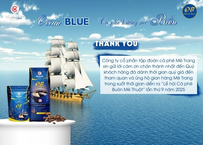 Khép lại thành công rực rỡ của Lễ hội Cà phê Buôn Ma Thuột lần thứ 9 năm 2025, Cà phê Mê Trang đã ghi dấu ấn sâu sắc trong lòng du khách trong nước và quốc tế. Đặc biệt, sản phẩm cà phê Ocean Blue của Mê Trang đã mang đến trải nghiệm độc đáo, nhận được sự hài lòng và đánh giá cao về chất lượng, mẫu mã cùng hương vị đặc trưng. Bên cạnh đó, các sản phẩm cà phê hòa tan 3in1 và Cappuccino dừa cũng nhận được sự yêu thích và đánh giá tích cực từ khách hàng.